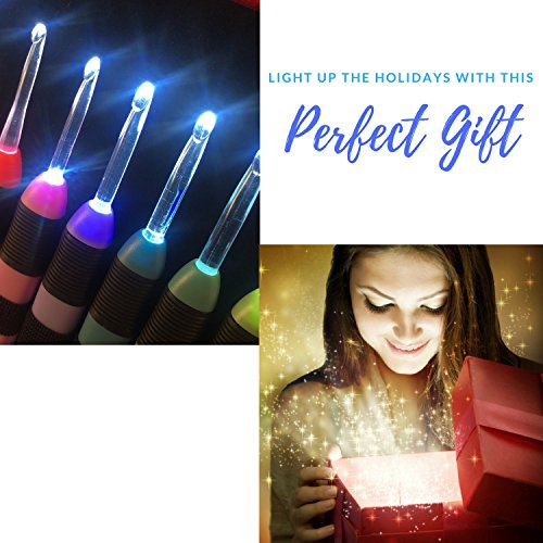 Premium 9 Pack of LED Lite Hooks for Crocheting. SET of 9 Hooks Ranging from 2.5mm to 6.5mm. Knitting Needles, Weave Sewing Tools are Ergonomic with Silicon Grips. Easy to Hold with Fatter Profile