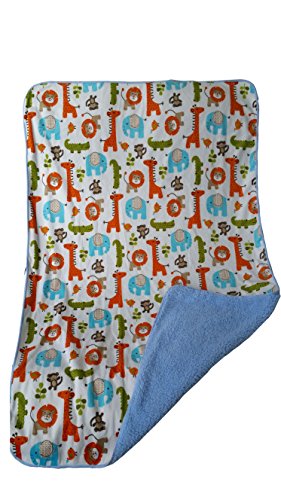 Beautiful Plush Baby Blanket in Gorgeous Animal Jungle Double Layered Blue Fleece for Extra Comfort Perfect for Swaddling and Strolling