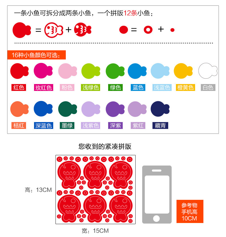 1 set of 12 small fish, which are the 3 sets of prices Brand: small Aiai Wall Stickers Type: waterproof wall stickers Material: environmental protection PVC, the back with rubber, Style: simple and modern Pattern: Animal Denominated:set Wall Sticker Style: Plane Wall Stickers size: detailed dimensions refer to the effect of Image (unit: cm) Sizes, "you receive the imposition compact" size and "collage after size reference" We are for reference only, you can combine according to room size freedom