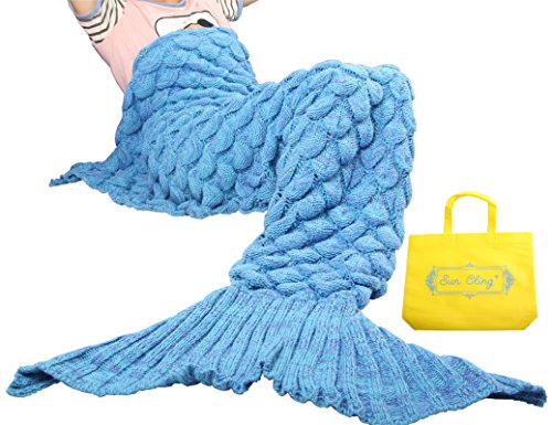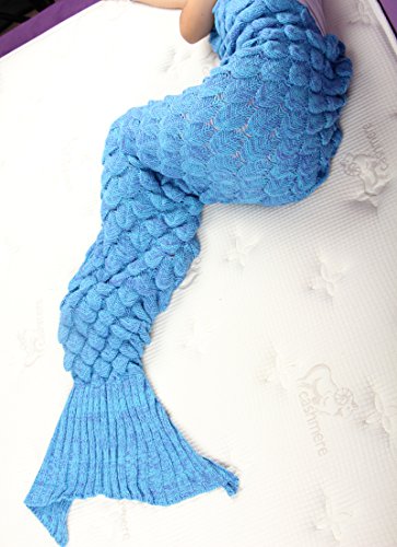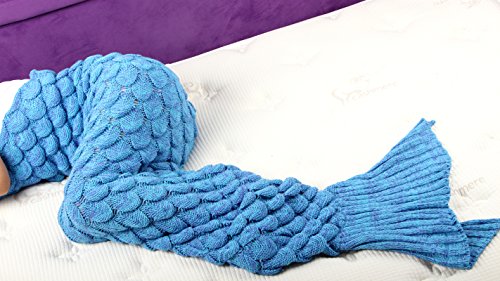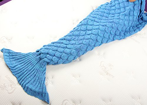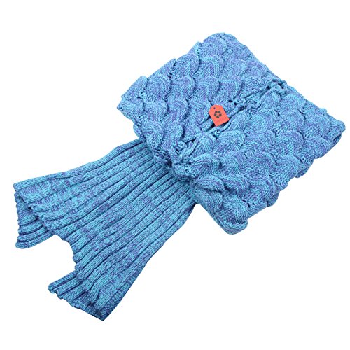 Feature : Keep Warm as Sleeping Bag- it could wiggle your feet into the blanket and keep warm.Great to wrap on the sofa, couch, bed or car for reading, watching TV or nap sleep. / Good Decoration-The creative mermaid tails blanket with bright color and beautiful cable knitted pattern is the good ornament for your living room or bedroom / Ideal gift for friends' birthday,wedding or party; Size: 70.74 X 35.37 inch / PLEASE wash before use, wash separately, hand wash or dry clean only, no machine wash / Item will come with a Sun Cling Eco Bag
