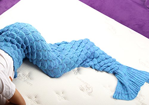 Title : Sun Cling Mermaid Tail Blanket Crochet for Adult Teens Living Room Bedroom Sofa Super Soft Scales Blankets Sleeping Bags-Blue