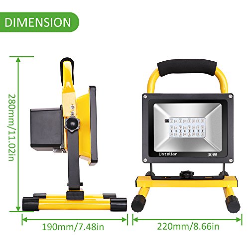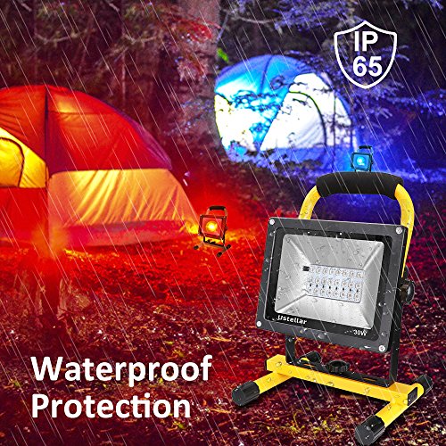 Ustellar Rechargeable 30W RGB LED Flood Lights, Outdoor Cordless Color Changing Floodlight With Remote Control, IP65 Waterproof, Portable 16 Colors 4 Modes Dimmable Emergency Light, Stage Lighting