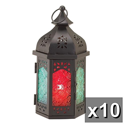 -. Title : Lot Of 10 Turret Multi-Color Glass Moroccan Design Candle Lanterns