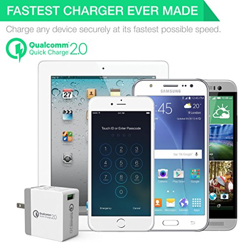 FASTEST CHARGING - THE FAST USB CHARGER THAT SHOULD HAVE COME IN YOUR SAMSUNG, HTC, LG, ASUS etc -Quick Charge 2.0 compatible devices charges 75% faster than the common OEM chargers that you get when buying a phone. Its uniquely designed electronics can also charge ANY device (iPhone 4/5/6) at its max charging speed. AMAZING!
