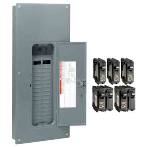 - Includes (3) HOM120 Homeline 20 amp single-pole circuit breakers, (2) HOM230 Homeline 30 amp double-pole circuit breakers and a combination flush/surface cover