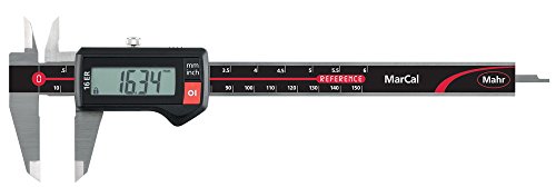 Mahr Federal 4103012 16 ER Digital Caliper, Range In/mm, 0-6'', 0.0005'' Resolution, Flat Depth Rod, No Output, Black/Red