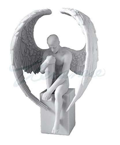 Male Nude Angel Sitting on Plinth Statue Sculpture Figure