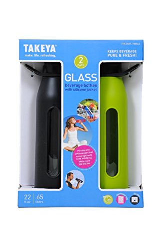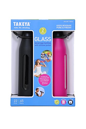 Takeya Classic Glass Water Bottle with Silicone Sleeve (2 Pack)