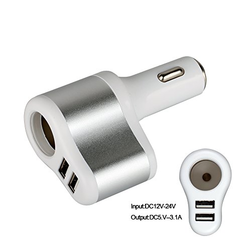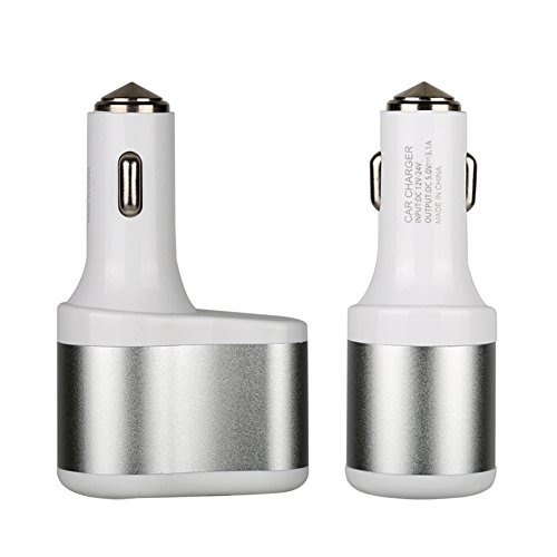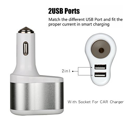 Car Cigarette USB Charger with Safety Emergency Hammer, SCHITEC Dual Ports 5V/3.1A Rapid Charging Adapter Portable Travel Charger For iPhone Samsung and Android Devices (Sliver)