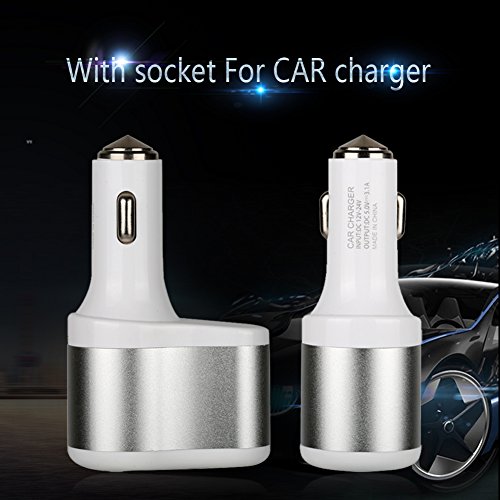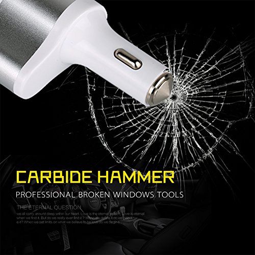 - Not only a car charger, but also a safety window hammer for escape by the accident. The top material of the charger is tungsten steel, it will break the car window easily allow a safe exit. Along with the stainless steel cutter, it will come in handy when help is needed to cut through the seat belt in an emergency