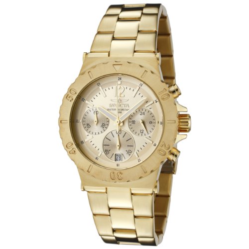Gold dial with gold tone hands, hour markers and arabic numeral 12; Luminous; Unidirectional bezel