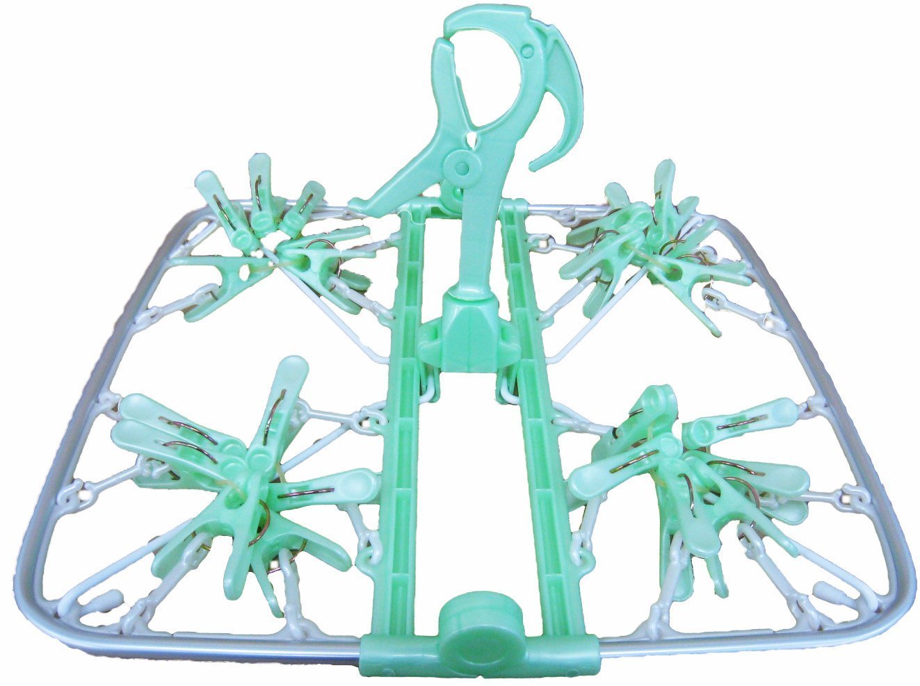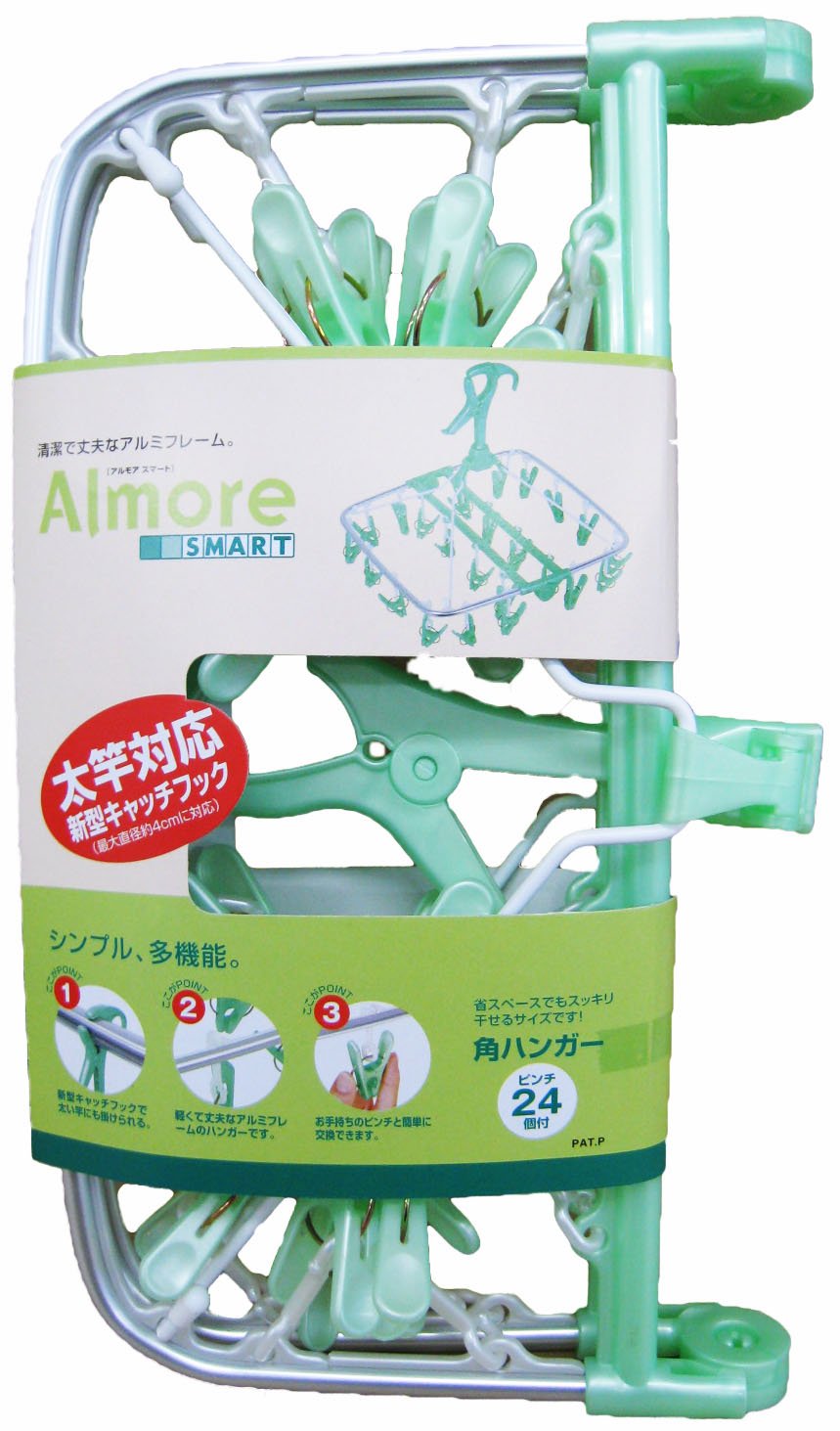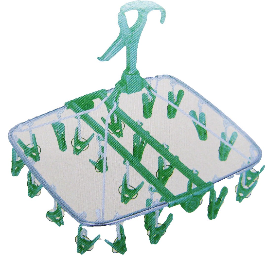 ● [Product Description] ● "Aluminum Moon Hanger Pinch with 24 Pinch Green" is a compact size functional hanger (with 24 pinches) convenient for indoor drying.