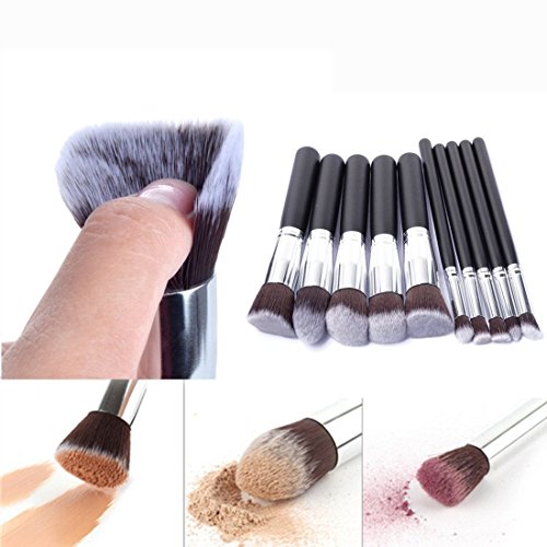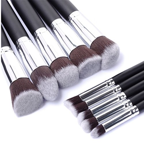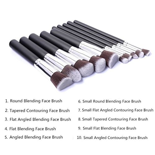 10 Pcs Makeup Brush Set Include: 1 x Flat Angled Blending Face Brush, perfect for Blush and Bronzer.