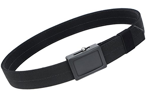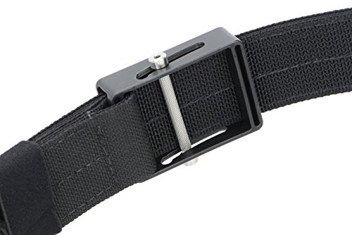 At 1.5" wide, the AEGIS ENHANCED is composed of 2 layers of proprietary stiff scuba webbing, with an added layer of 1.5" thin colored webbing (black) on the outside. The Aegis buckle is beadblasted stainless steel with a black nitride finish, with a machined tension bar that holds the belt tight wherever you set it (no more playing Goldilocks with a belt that's either too tight or too loose!).