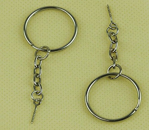 YOYOSTORE 50 Silver Tone Round 24mm Split Key Ring Keychain W/attached Extend Chain Eye Screw Eye Pin Bails Top Drilled Connectors Pendant Bail