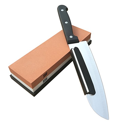 - DOUBLE SIDE COMBINATION STONE and PREMIUM QUALITY MATERIAL: the knife sharpener is perfect for kitchen, outdoor and DIY projects; The low grit side 3000 # is for tough sharpening and the other high grit side 8000 # is for fine grinding. We choose very professional and high quality white corundum material to guarantee the product is heat-resistant, wear resistant and durable
