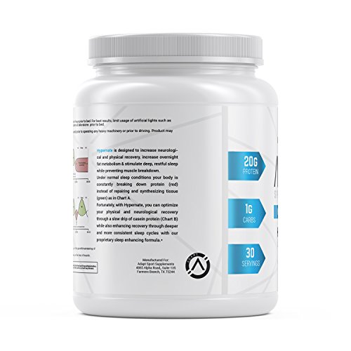 -. Binding : Health and Beauty -. Brand : Adapt Sport Supplements -. Color : Chocolate -. Feature : Promote lean muscle growth and recover while you sleep through a slow-digesting protein / Enhanced recovery with our proP.R.Ietary sleep-aid formula designed to promote deep, sound, restorative sleep / Ideal for overnight sustained muscle growth and repair with needed nutrients throughout the night / Adapt Hypernate promotes innovative human performance to simultaneously optimize your training and recovery / 20G Protein per servings | 1G Carbs per serving | Gluten Free | Non-GMO | 10g of Essential Amino Acids -. IsAdultProduct : 0 -. Label : Adapt Sport Supplements -. LegalDisclaimer : Allergen Warning: Contains Natural Chocolate Avoid operating heavy machinery or a vehicle as Adapt Hypernate may cause drowsiness. -. Manufacturer : Adapt Sport Supplements -. ProductGroup : Health and Beauty -. ProductTypeName : HEALTH_PERSONAL_CARE -. Publisher : Adapt Sport Supplements -. Studio : Adapt Sport Supplements -. Title : ADAPT HYPERNATE | Micellar Casein Protein Powder | Natural Sleep Aid and Muscle Recovery Supplement | Low-Carb | 30 Servings, Chocolate