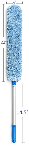 A MUST-HAVE CLEANING ACCESSORY FOR ANY HOUSEHOLD! With a flexible, bendable duster head measuring 4” in width, 20” in length and 2” thickness, our premium duster can fit in even in the smallest, trickiest place that is 1 ¼” wide!