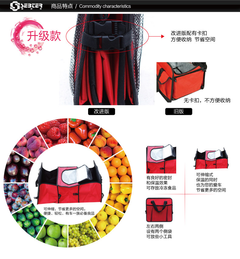 3: Back to mention versatile design, portable, shoulder, and suitable to hang on the car seat back, increasing the use of space inside the car.