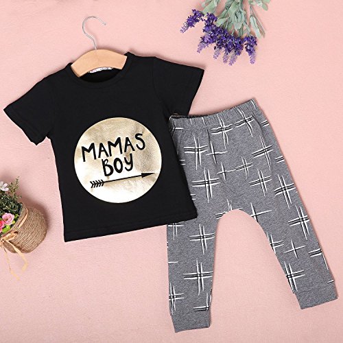 -. Binding : Apparel -. Brand : VIVIQ -. Color : Black -. Department : baby-boys -. Feature : Fashion design,100% Brand New,high quality / Asia size is smaller than US size,Please check the size information below before buying. / Material:Cotton Blend / Soft hand feeling material for comfortable to wear / Package included: 1x Top+Pants -. ProductGroup : Apparel -. ProductTypeName : PANTS -. Title : Baby Boys' Cotton Letters P.R.Inted T-shirt+pants 2pcs Clothes Set