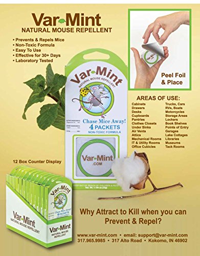 -. Feature : Natural Mouse Repellent Prevents & Repels / Effective for a Minimum of 30 Days / Non-Toxic: Safe for Children, Pets and the Environment / Laboratory Tested / Easy to Use: Peel Foil & Place