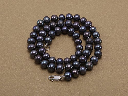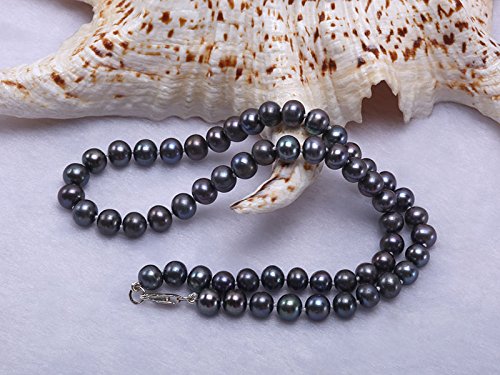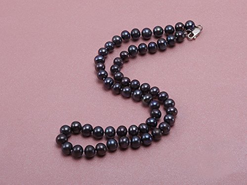 Description *Stylish single-strand princess necklace made with 6-7mm black round cultured freshwater pearls.
