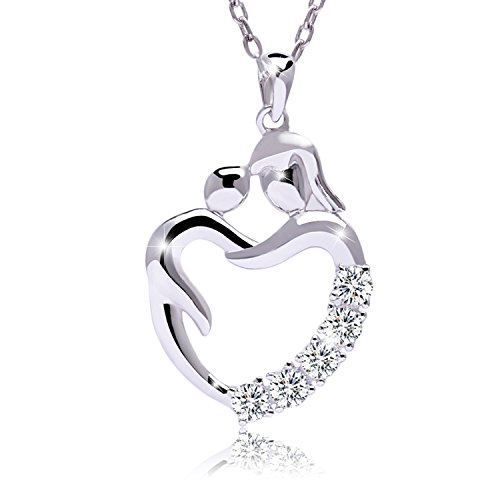 For Mom Necklace 925 Sterling Silver Open Heart Pendant Necklace Mothers Day Gifts Mother Child Necklace?High quality materialsMade of 925 STERLING SILVER chain and pendant, with top grade cubic zircons inlaid