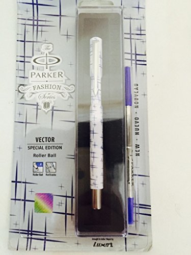 Brand Name : Parker. Type: Roller Ball Pen. Collection: Vector Special Edition CT - Sparkle Blue. Body Colour - Blue. Ink Colour: Blue. Body Material: ABS Plastic. Mechanism: Cap on Cap off Ink and Cartridge Features. Ink Colour: Blue. Refill Features Replaceable Refill: Yes. Refill Width: Fine. Nib and Tip Features. Nib Features: Tungsten Carbide (TC) ball