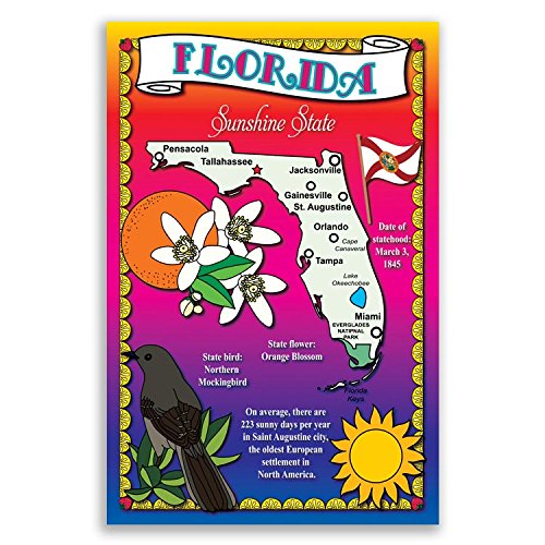 -. Title : FLORIDA STATE MAP postcard set of 20 identical postcards. Post cards with FL map and state symbols. Made in USA.