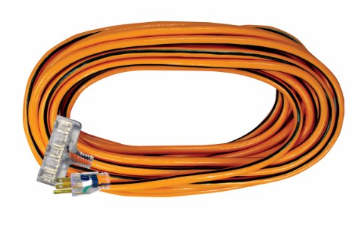 Voltec 05-00120 14/3 SJTW Outdoor Power Block Extension Cord with Lighted End, 25-Foot, Orange with Black Stripe