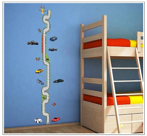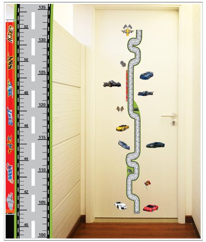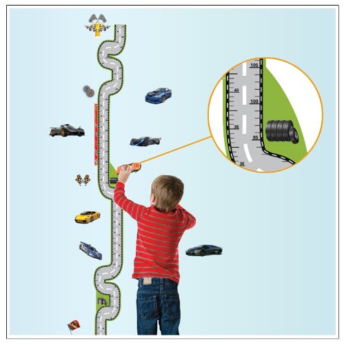 -. Title : Kappier Race Cars with Tracks Height Measurement Growth Chart Removable Wall Decals