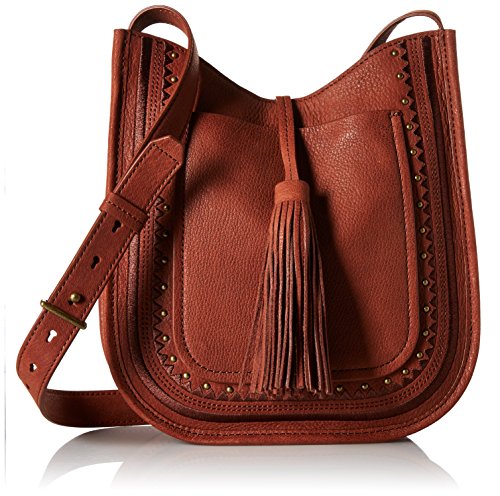 Fresh update to a classic silhouette! the zori crossbody is fun, flirty and functional! features embroidered trim, petite stud detail, pullover fringe tassel and an adjustable crossbody strap.