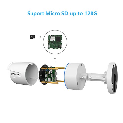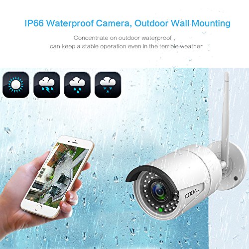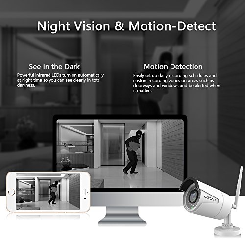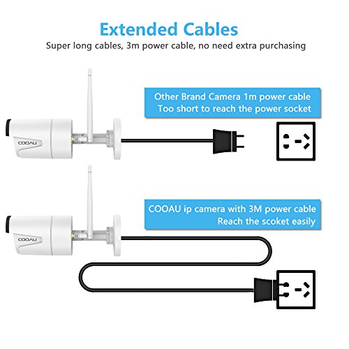 COOAU Wireless Home Security Camera CCTV 720P Wi-Fi Surviellance IP Camera Waterproof , Remote Monitor Control via Mobile Device, Motion Detect Alarm 10M Night Vision Recording White, 3M Power Cable