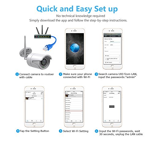 - Easily Configuration: This is a plug and play camera. The installation is really easy to understand, download the “CAMHI” app to your iOS/Android smart-phone, scan the QR code on the camera. Important tricks before connection: IP/Network-2.4GHz Wireless (Incompatible with 5GHz). If your router supports both band, please close the 5GHz whiling connection.