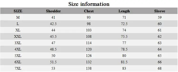 Size:Asia / M L XL XXL XXXL 4XL 5XL 6XL 7XL