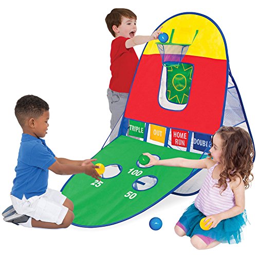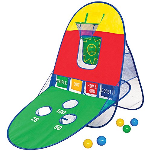 Includes 5 plastic balls suitable for use in all 3 games. 30" x 42" x 40" assembled. Folds flat for storage. Great indoor fun. 0