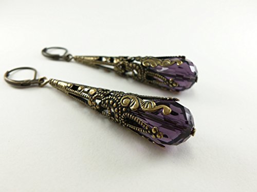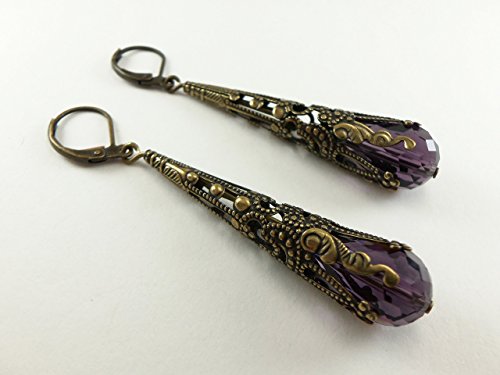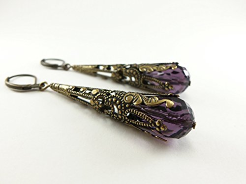 -. Title : Amethyst Earrings Long Dangle Earrings February Birthstone Earrings Steampunk Victorian Jewelry