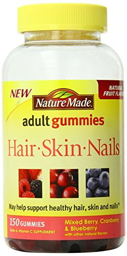 -. Binding : Health and Beauty -. Brand : Nature Made -. EAN : 0031604041328 -. Feature : Made with natural fruit flavors that adults prefer, Nature Made Adult Gummies are a great tasting way to take your vitamins / Nature Made -. IsAdultProduct : 0 -. Label : Nature Made -. Manufacturer : Nature Made -. MPN : 4132 -. NumberOfItems : 1 -. PackageQuantity : 1 -. PartNumber : 4132 -. ProductGroup : Health and Beauty -. ProductTypeName : HEALTH_PERSONAL_CARE -. Publisher : Nature Made -. Size : 150 -. Studio : Nature Made -. Title : Nature Made Hair Skin & Nails Adult Gummies Value Size-150 ct -. UPC : 031604041328