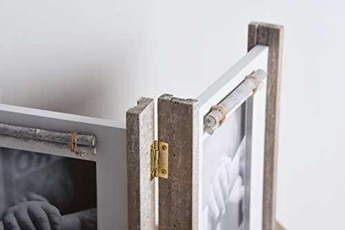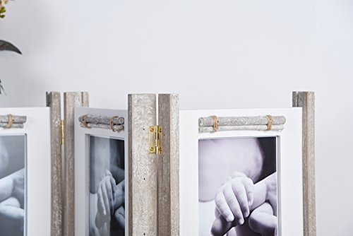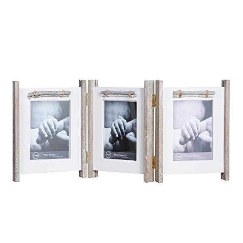 - DESIGN:rustic grey wood on sides,white wood frame with distressed twigs,elegantly displays three 5x7 inch photos.