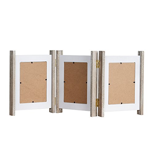 Yaetm 3-Frames Set, Hinged Rustic Solid Wood Picture Frame,Home Deco.Three 5 by 7 Inch Photo Frames On Desk,Rustic Grey & White