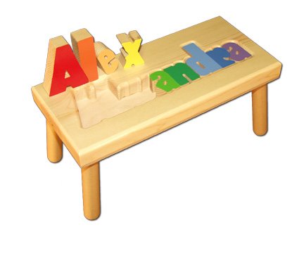 -. Brand : Damhorst Toys & Puzzles -. Color : Natural Wood in Primary Colors -. Feature : PLEASE TYPE THE CHILD'S NAME USING THE "CUSTOMIZE NOW" BUTTON / Stool top measures 9" x 20" (Stands 9 inches off the ground) / 14 letter maximum (13 letters with two names) / Natural finish with letters in primary colors (non-toxic water based) / Made from one solid piece of Ponderosa Pine crafted in our Missouri workshop -. Label : Damhorst Toys & Puzzles -. Manufacturer : Damhorst Toys & Puzzles -. Model : 201 -. MPN : 201 -. PackageQuantity : 1 -. PartNumber : 201 -. ProductGroup : Furniture -. ProductTypeName : HOME_FURNITURE_AND_DECOR -. Publisher : Damhorst Toys & Puzzles -. Size : Large -. Studio : Damhorst Toys & Puzzles -. Title : Personalized Wooden Child's Name Puzzle Stool - LARGE -. Warranty : Unfortunately there are no returns on personalized items