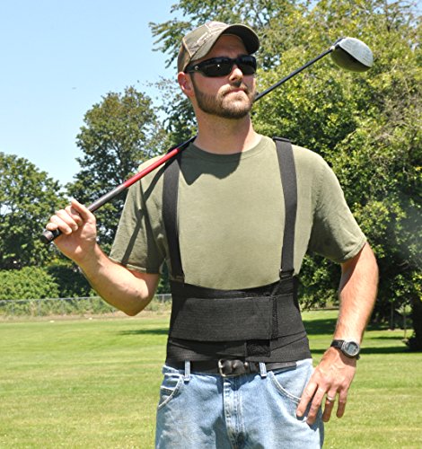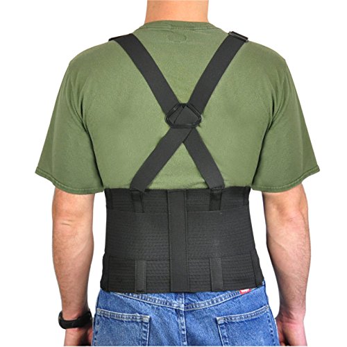 Ventilated Elastic Back Brace Lumbar Support, With Adjustable Suspenders And Over Lapping Belt For Lower Back Compression, Made With High Quality...