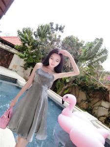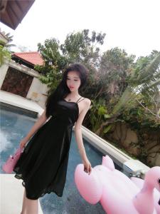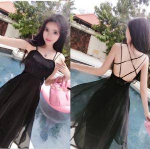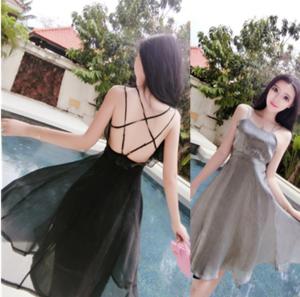 シフォンワンピース キャミワンピース バックデザイン プチプラ 上品 セクシー 膝丈 Vネック フレアスカート