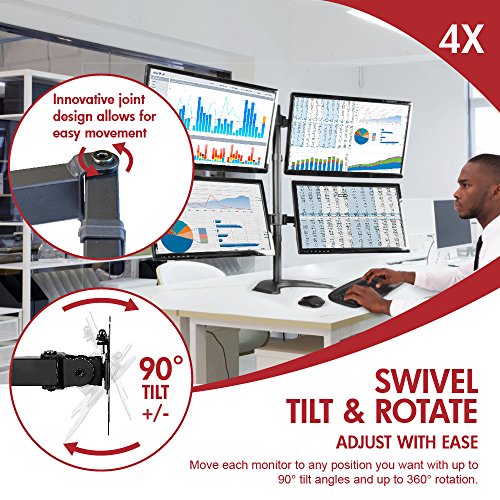Viotek Articulating Quad 4-Monitor Stand with Adjustable Height -Monitor Arm with Vesa Mount fits up to 4 screens.