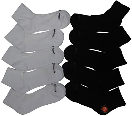 Bodyglove Men's Quarter Cut Socks Color 5 Black/5 White, (Pack of 10)