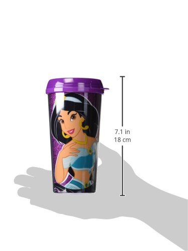 -. Binding : Kitchen -. Brand : Disney -. Color : Multicolor -. EAN : 0812494027506 -. Feature : 16-ounce travel mug / Enjoy a hot beverage in style / Start your morning off with a smile / Show off your love of Jasmine / BPA Free, HAND WASH ONLY -. Label : Disney -. Manufacturer : Disney -. Model : DQ5787G -. PackageQuantity : 1 -. ProductGroup : Kitchen -. ProductTypeName : KITCHEN -. Publisher : Disney -. Size : 16 oz -. Studio : Disney -. Title : Disney Silver Buffalo DQ5787G Disney Princesses Jasmine Glitter Plastic Travel Mug, 16 oz, Multicolor -. UPC : 812494027506