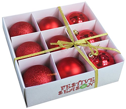 -. Title : 9pk 3.15" (80mm) Christmas Ball Ornaments - Shinny/Matte/Sparkle & Storage Box