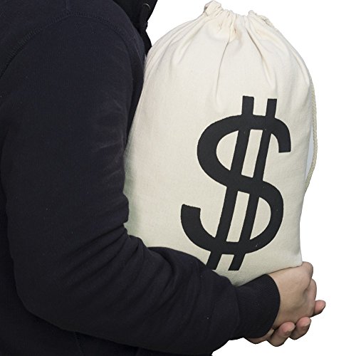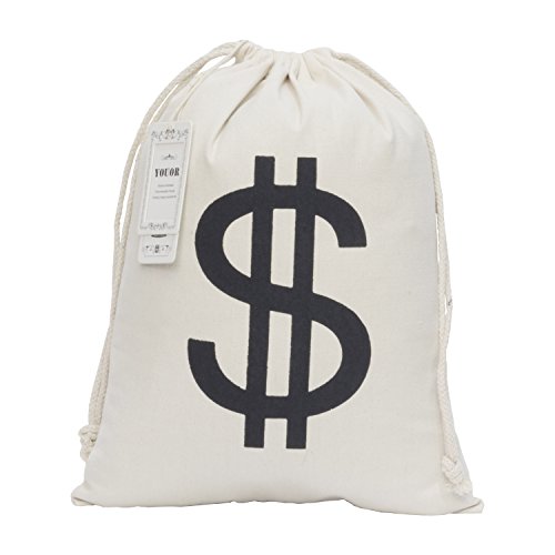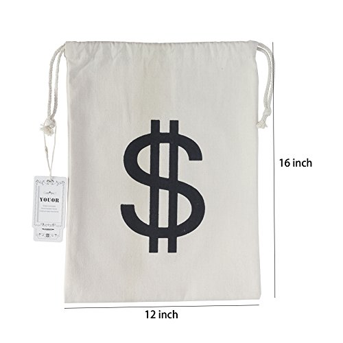 YOUOR Canvas Dollar Sign Robber Drawstring Bag Storage Grocery Gift Bag Candy Bag Toys Organizer- 16 x 12 inch
