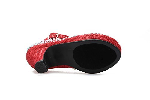- Feature : Synthetic / Heel Height: 1.5 / Mid Heels with metallic colors / Cushioned foot bed with padded insole / Run large, recommend to order half size down