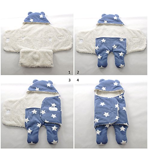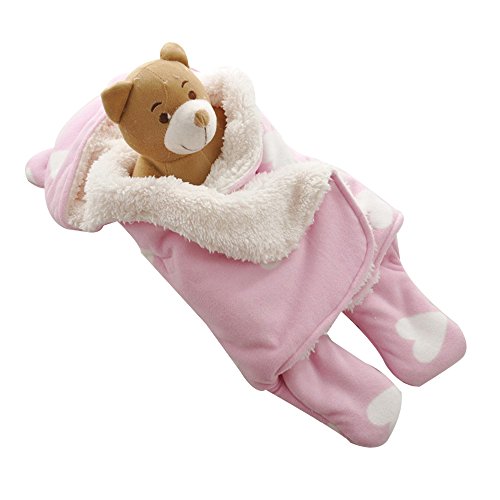-. Feature : Unique shape design, part from the traditional and complex method to wrap the baby: directly put the baby in the swaddling clothes--so simple to wrap your baby; beautiful and cute style will make your baby so cute and beautiful! / Two layers from fine fleece and cashmere with lovely shape; Give your child sense of security and comfort. / Health and safety infant swaddle, perfect from every detail; Thick cashmere fabrics to bring your baby warm and soft feeling. / Secure sticking button which is convenient to switch on and off; Scratch-proof design can protect the baby from being scratched. / Cute and beautiful appearance; Split design allows your baby to kick freely.
